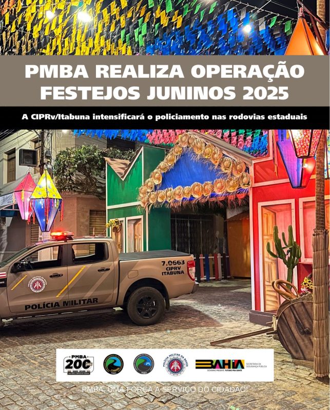A Polícia Militar da Bahia, por meio do Comando Especializado de Policiamento Rodoviário (CEPRv), iniciou a Operação Festejos Juninos 2025. A intensificação do policiamento inicia nesta quarta-feira (18) e seguirá até 30 de junho em pontos estratégicos nas rodovias estaduais…