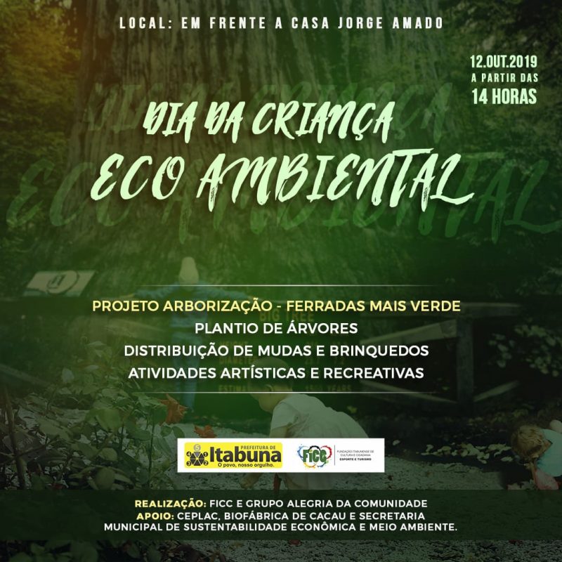 A Fundação Itabunense de Cultura e Cidadania (FICC) e o Grupo Alegria da Comunidade realiza, neste sábado (12), o Dia da Criança Eco-Ambiental, a última etapa de uma série de atividades de educação ambiental como parte do Projeto de Arborização…