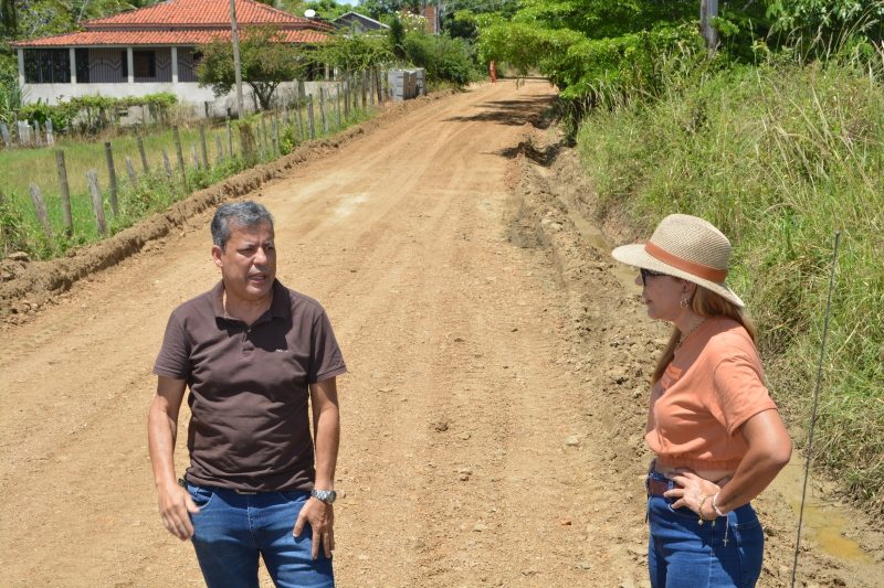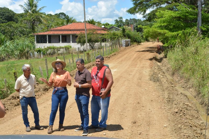 Durante a visita, a prefeita esteve acompanhada do secretário municipal de Agricultura e Meio Ambiente, Fredson Santos, e do diretor de Estradas, Aroldo Melo (Aroldão do Povão).